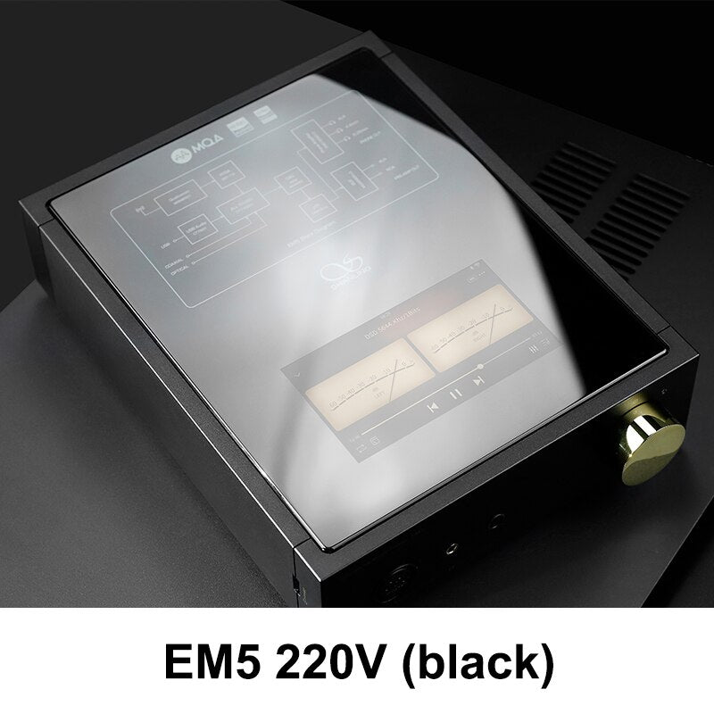 EM5 was designed as a DAC/AMP for high-end headphones, with a range of different connectors, including balanced XLR and 4.4mm. It can also be used as a DAC and pre-amplifier when combined with a separate power amplifier or active speakers.